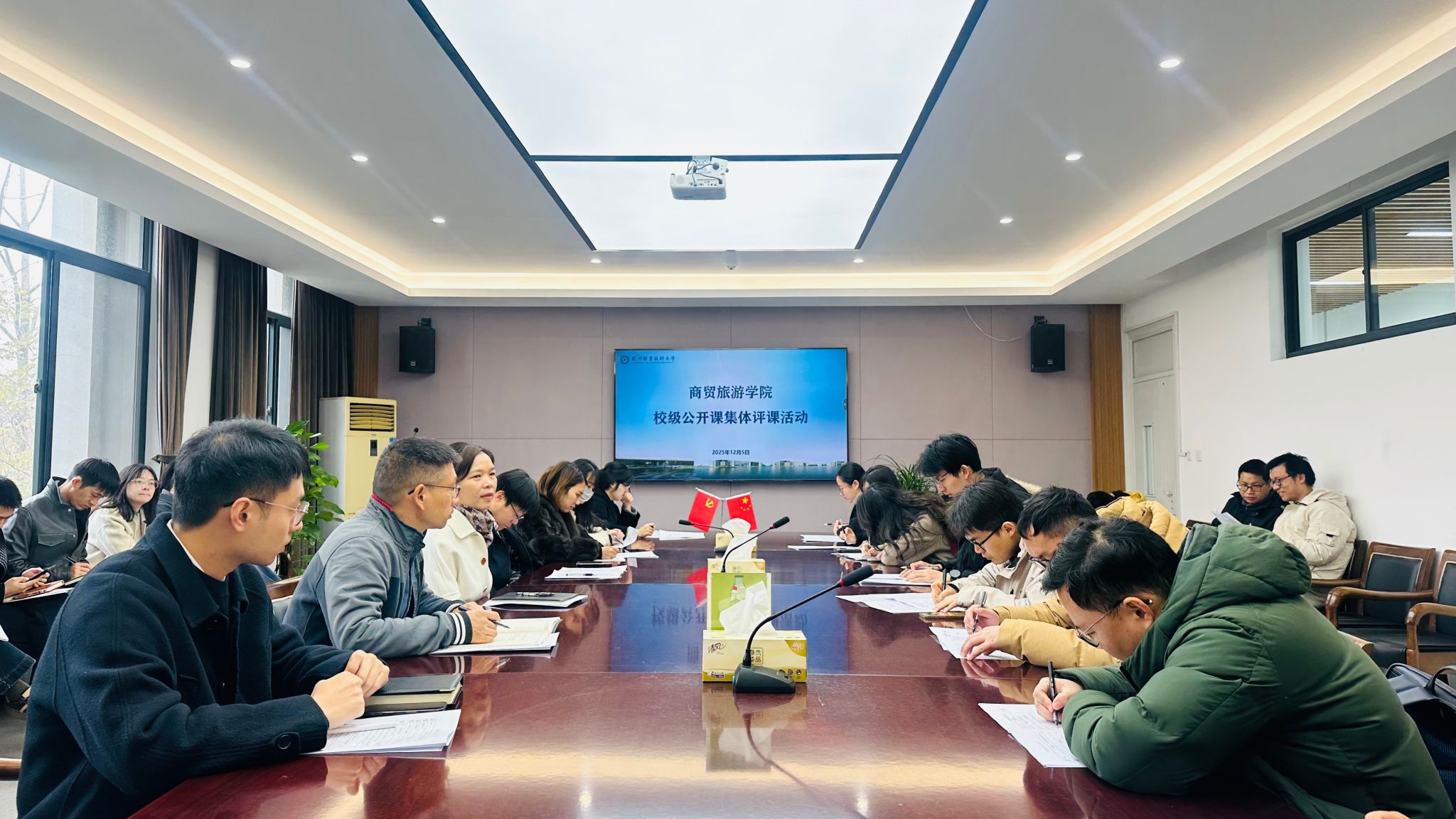 公开课结束后,全体观摩教师在会议室进行了集中评课。大家对本节课给予高度评价,一致认为范昕俏老师课程示范性强、互动深入、设计新颖。授课教师仪态端庄、语言得体、举止舒展,充分展现了专业教师的风范,实现了言传身教的育人效果。课堂设计了情景模拟、角色扮演、小组讨论、即时互评等多形式互动环节,极大调动了学生的参与积极性。特别是创新设置的学生与数字人访客交互环节,将人工智能融入传统礼仪训练,在提升课堂趣味性的同时,有效锻炼了学生在多元场景下的礼仪应用与临场应变能力。